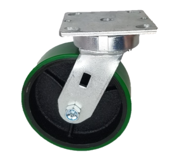 • Polyurethane tread chemically bonded to cast iron core