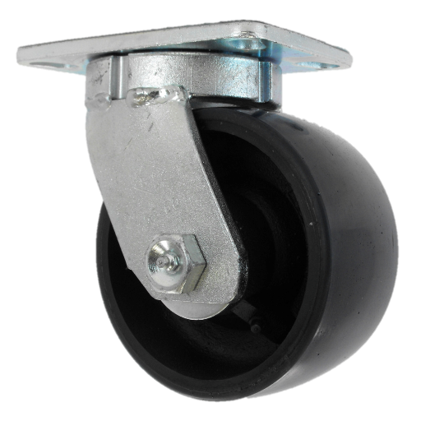 • Crowned polyurethane tread chemically bonded to a solid heavy-duty cast iron core